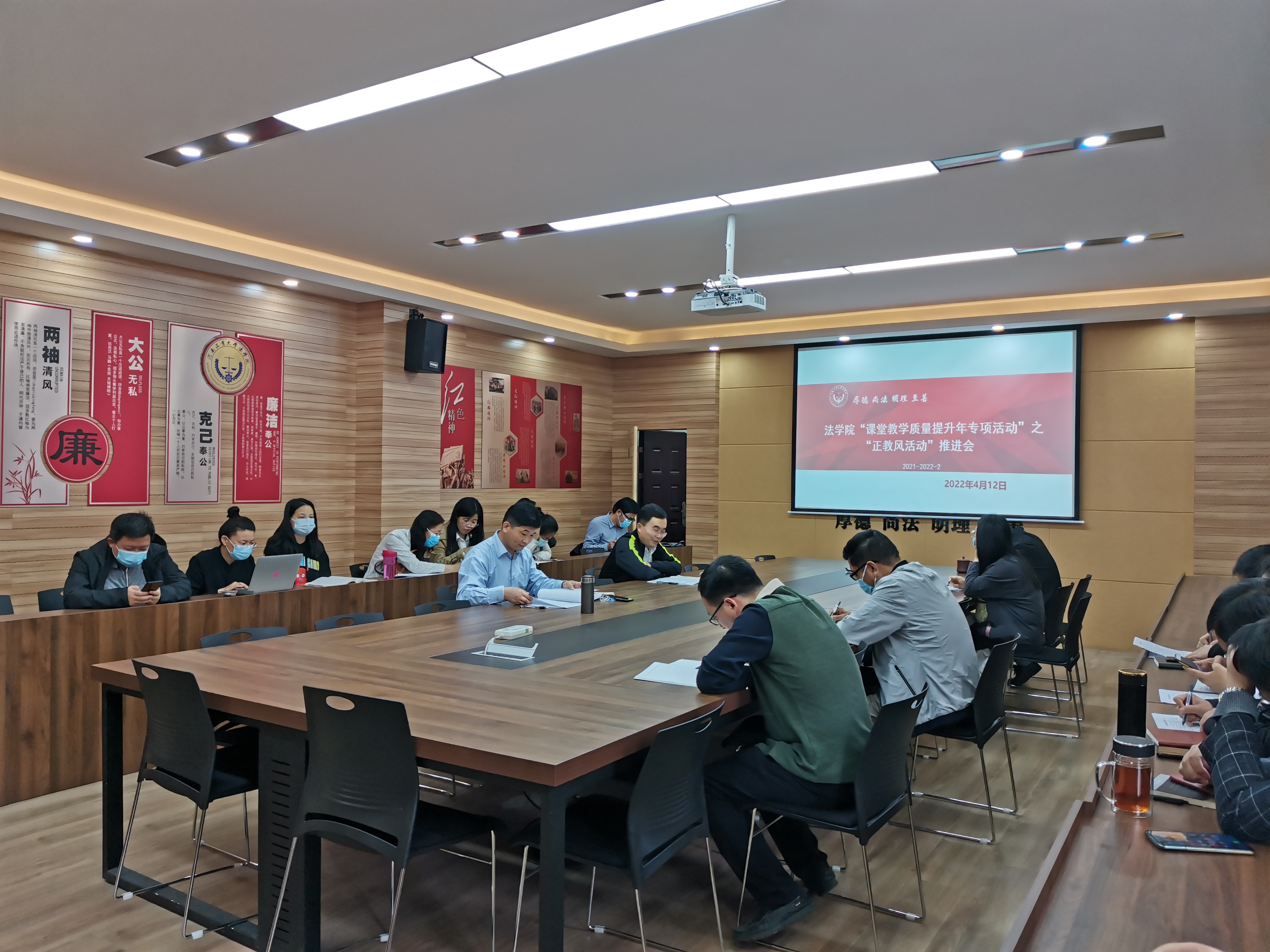 4月12日下午,我院在3424会议室召开“课堂教学质量提升年专项行动”之“正教风活动”推进会。全体教职工参加会议,会议由足球博彩网站