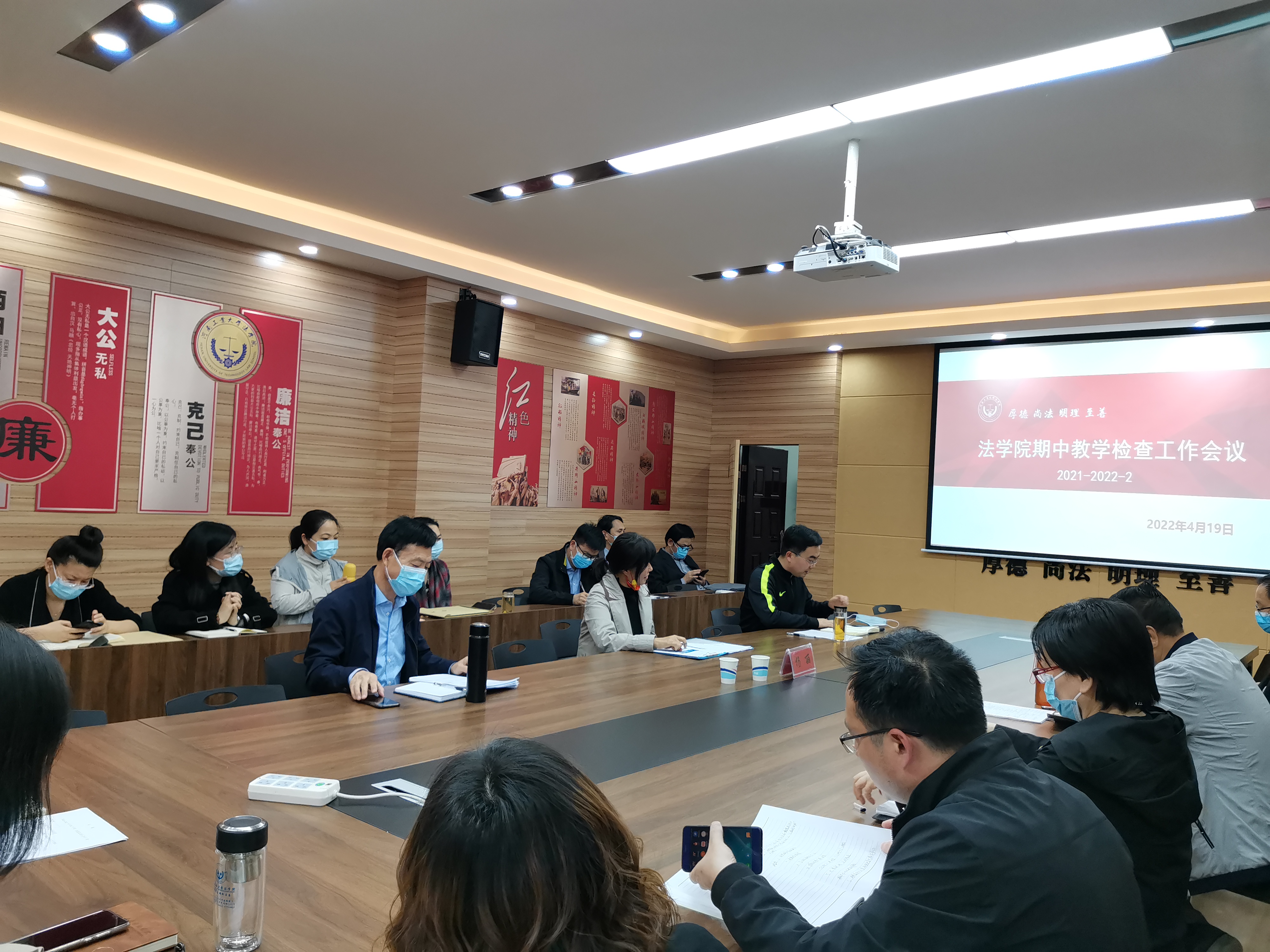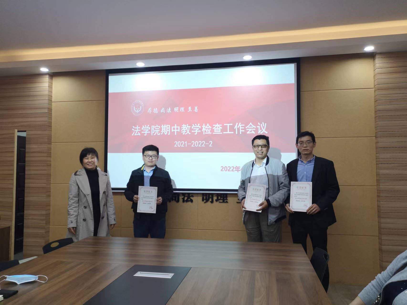 第二个阶段是召开期中教学检查教师座谈会。座谈会上,苏冬冬、毛凯良、侯文杰、李文江、黄延峰、翟新等老师就课程思政、知识传授、价值塑造等方面总结了自己的课堂教学。陈辉、谢应霞、王小鹏三位老师,打破行政班划分,创新教学模式,对2019级实践课《模拟审判》采用了集体备课、集体指导、集体考核的教学方法,合理安排授课内容,让学生都能找到自己学习的兴趣点,学生学习的积极性很高。