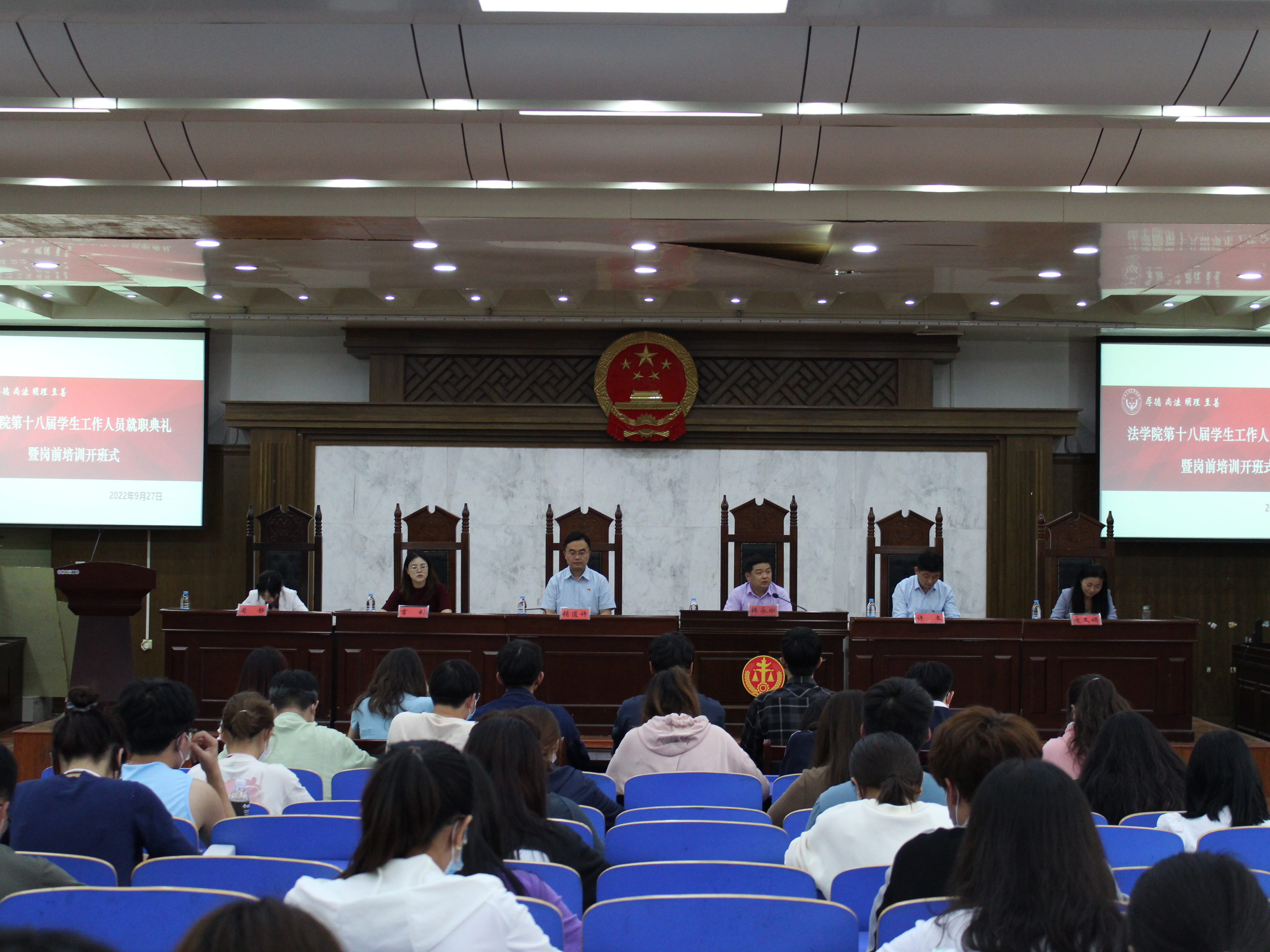 在3121学术报告厅举行第十八届学生工作人员就职典礼暨岗前培训开班式。足球博彩网站