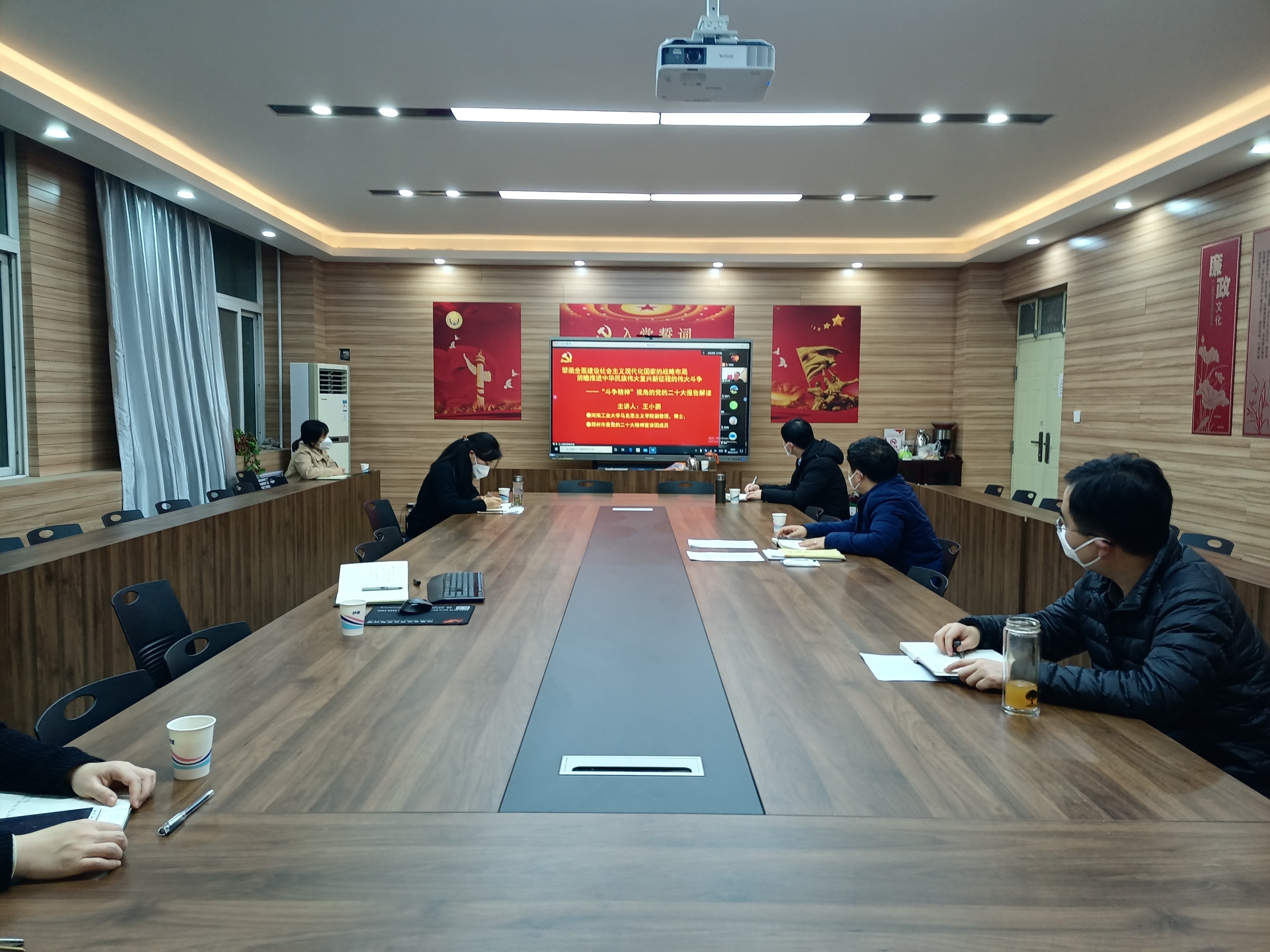 各党支部要把深入学习领会党的二十大精神作为一项重要任务,开展系列学习活动。二是夯实任务,抓好学习。要结合王小拥老师的梳理、讲解,全面学习领会党的二十大报告精神,主动提升政治责任感和历史使命感,推动党的二十大精神入脑入心、学深学透。三是联系实际,注重实效。要把学习贯彻党的二十大精神与手里的工作结合起来,把党的二十大精神的精髓用于指导科研、教学、行政等各项工作,把学习效果转化为切实的工作成果。