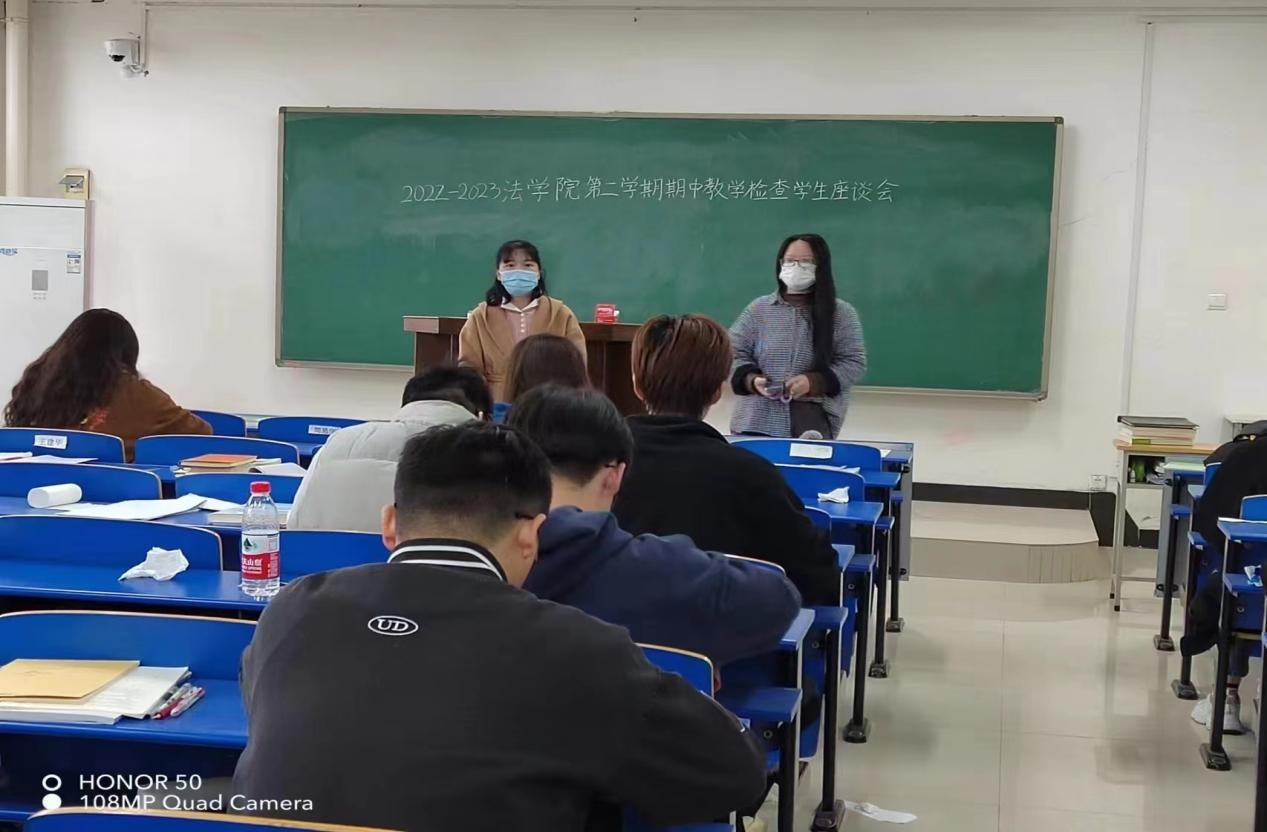 4月21日在3438教室召开了期中教学检查学生座谈会,院长助理南海燕、教学办杨青和学生代表参会;4月23日在足球博彩网站