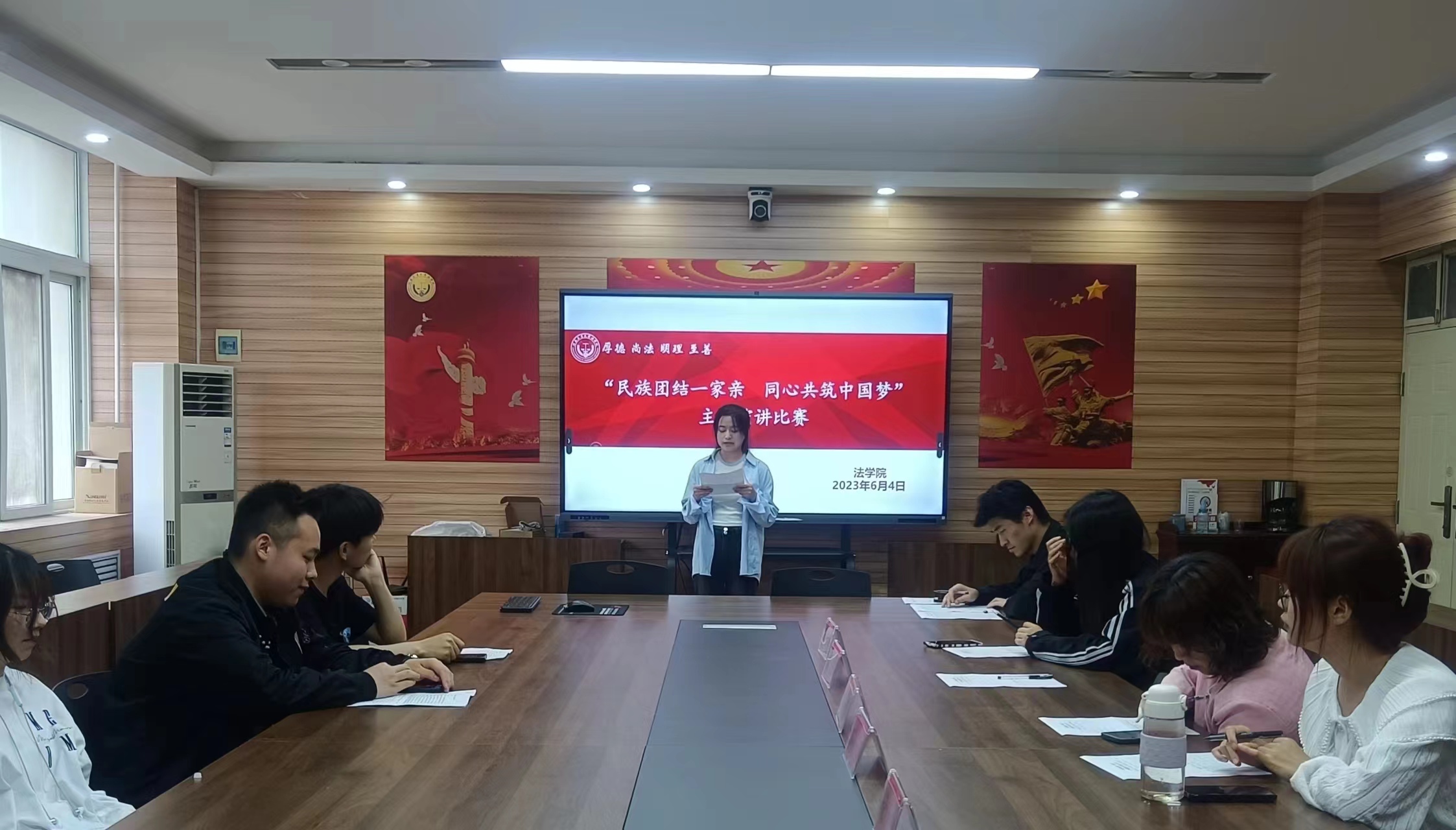 在3424会议室举行了“中华民族一家亲 同心共筑中国梦”主题演讲比赛。辅导员周静、学生工作人员及参赛选手参加比赛活动。