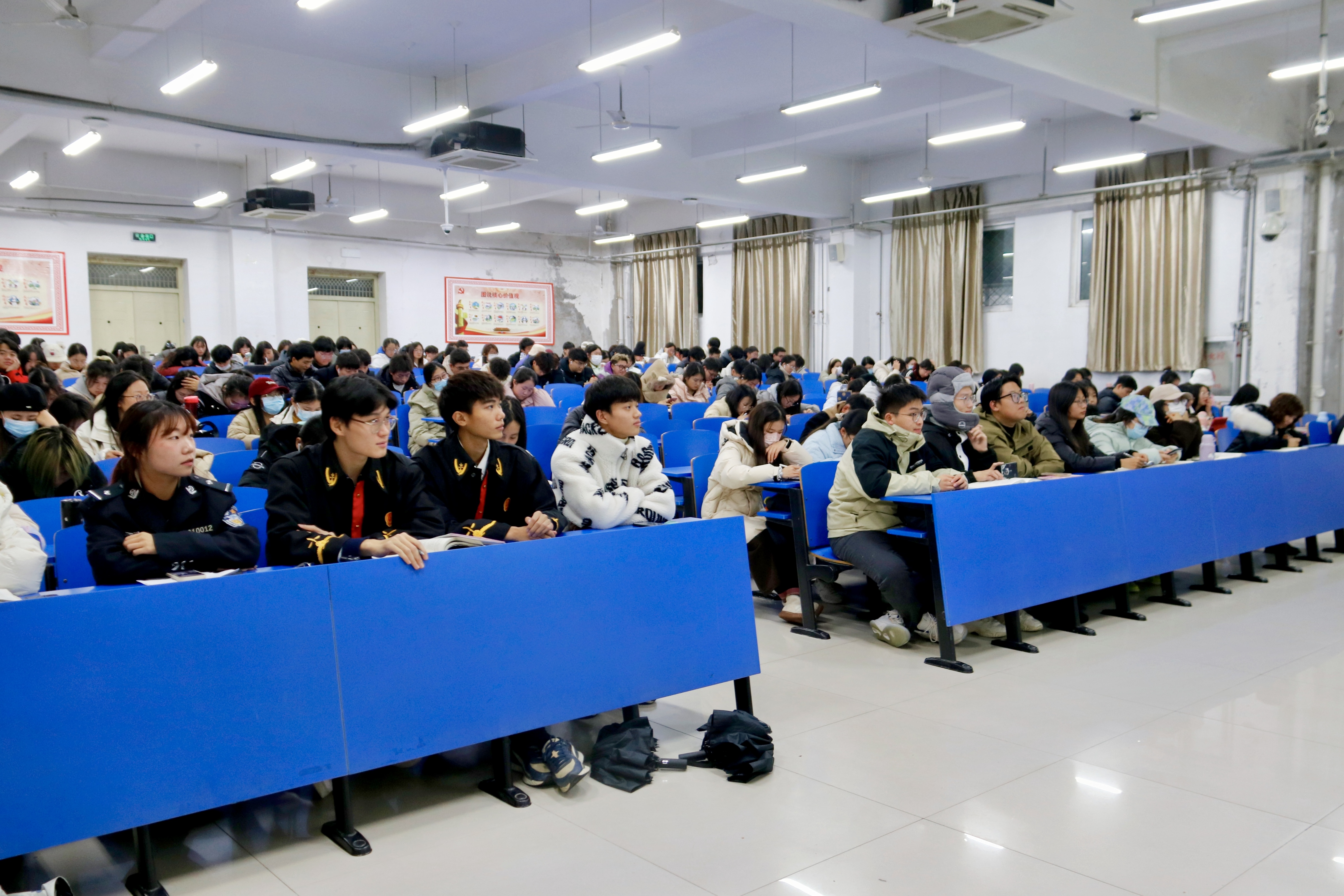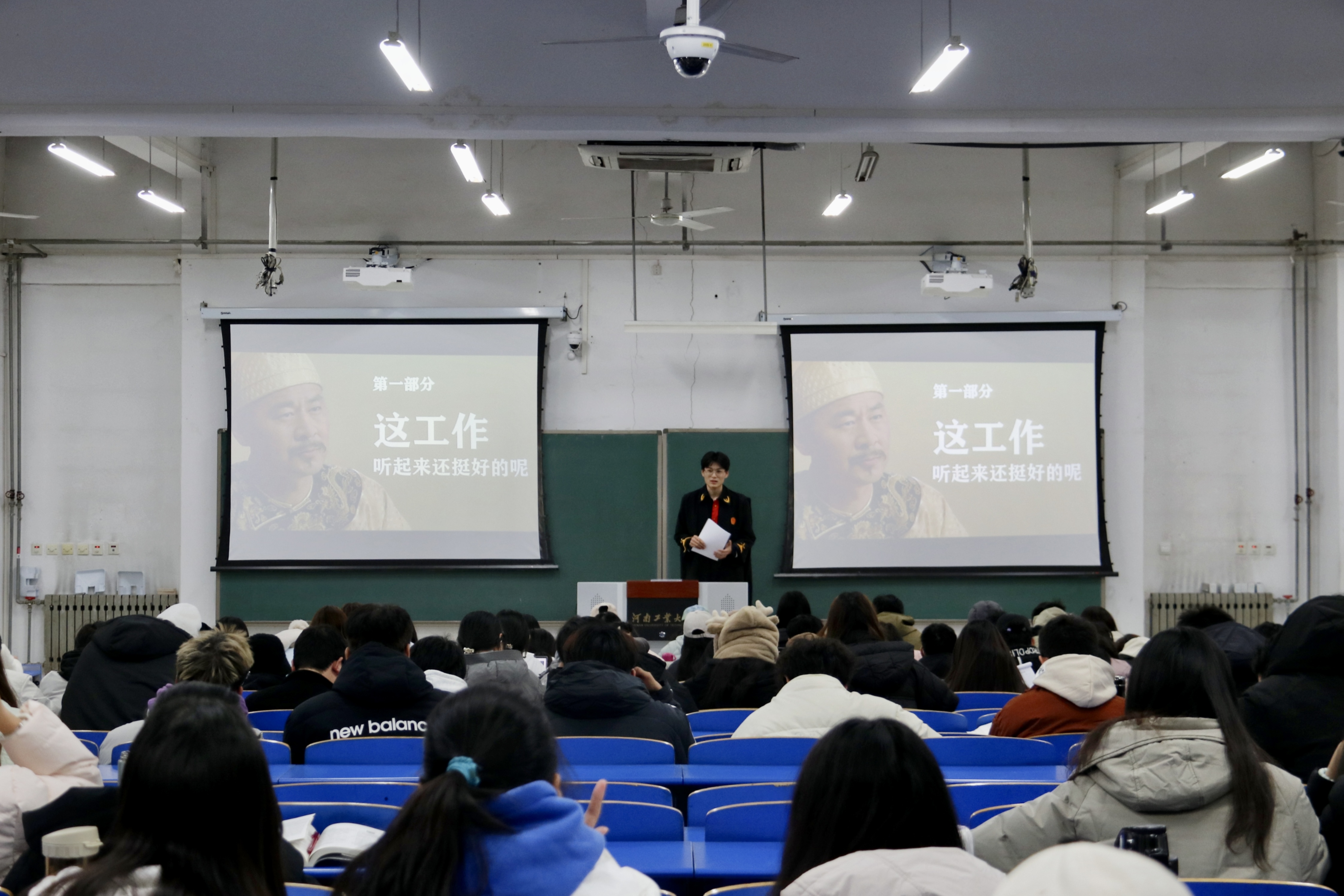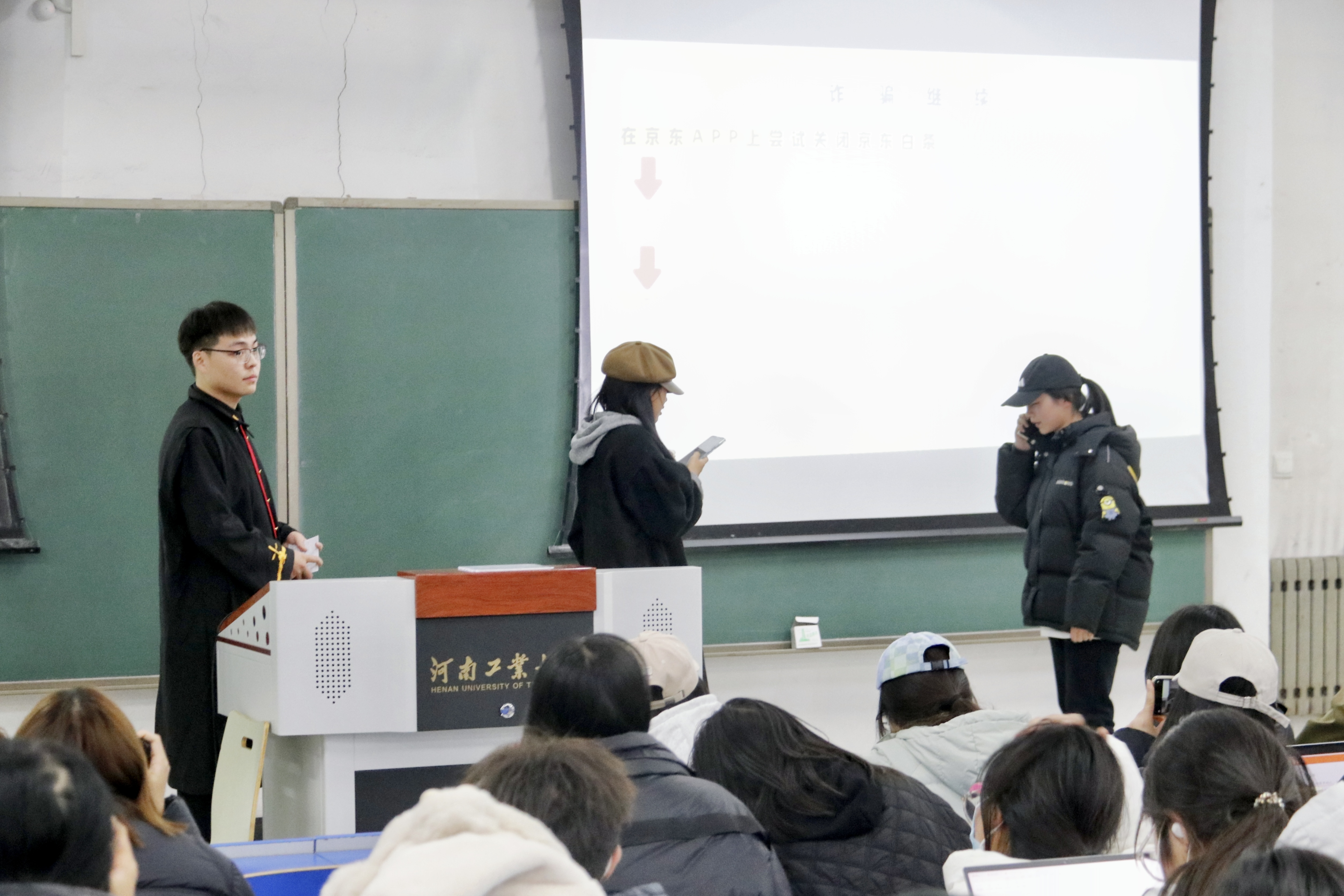 反诈宣讲团于3101教室为2022级全体学生开展反诈骗宣讲暨普法活动。辅导员周静、李丹龙出席本次活动。活动由王莹杰主持。