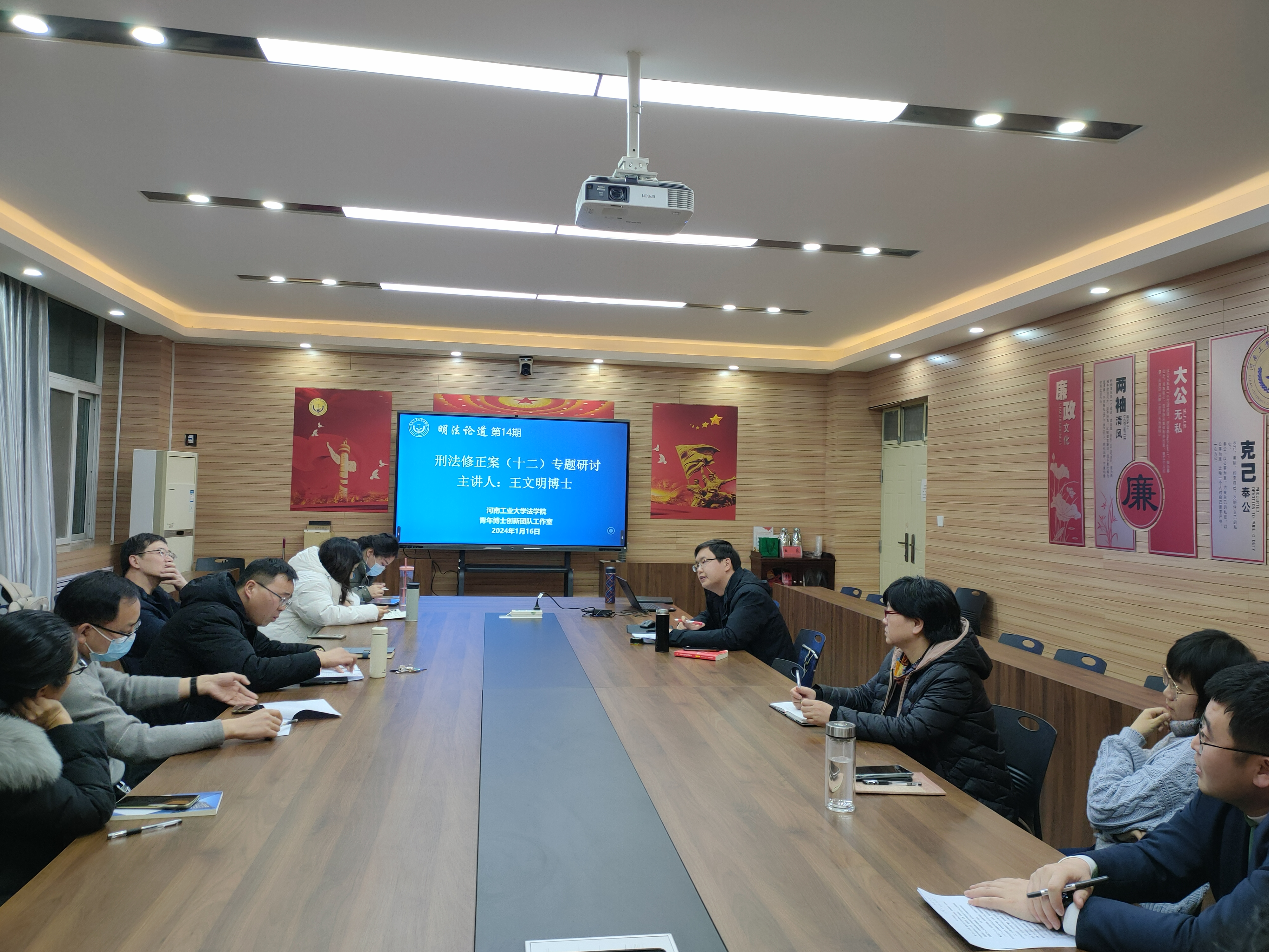 在3424会议室成功举办明法论道第14期学术研讨会。为了更好地理解和适用《刑法修正案(十二)》的相关规则,本期聚焦《刑法修正案(十二)》新规则的深度解读。邀请我院王文明博士作为主讲人解读《刑法修正案(十二)》,足球博彩网站