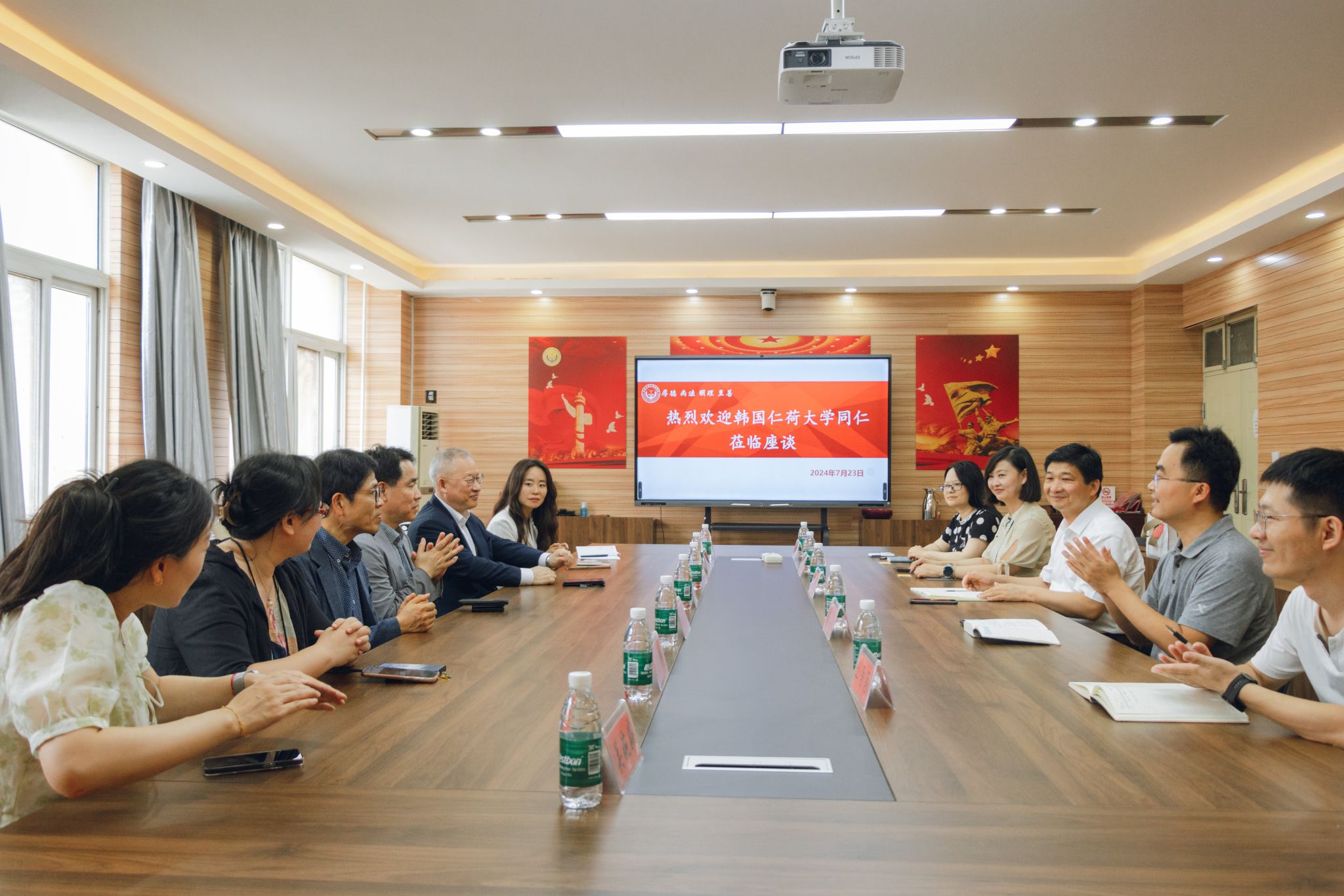 7月23日,韩国仁荷大学法学研究生院院长丁莹镇、仁川大学柳春雨、蔚山大学王静等一行6人到足球博彩网站