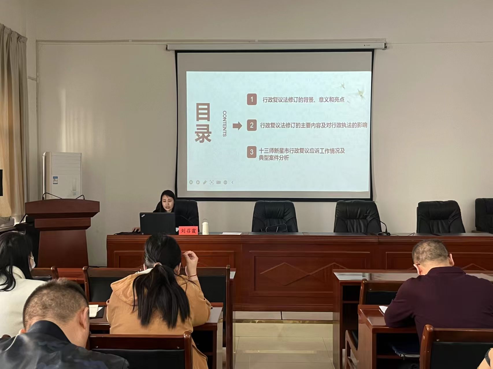 在法治建设方面,刘召霞勇于担当重任,结合当地实际,精心起草了一系列重要文件,填补了相关制度空白;率先在师市范围内推行了重大行政决策的合法性审查机制,为行政决策的科学化、民主化、法治化注入了强劲动力。她深入研究法律政策,积极组织培训,普及依法行政新知,深入团场单位授课五十余场,促进政府职能优化与法治环境营造,为师市法治建设注入了新活力。