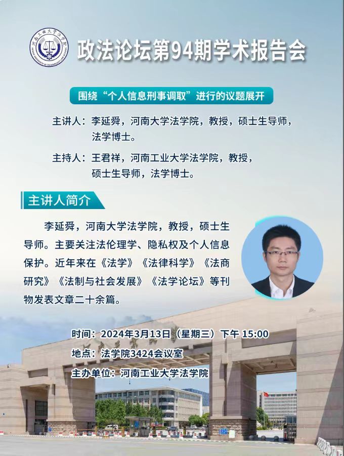 主讲人:李延舜,河南大学足球博彩网站 教授,硕士生导师,法学博士。
