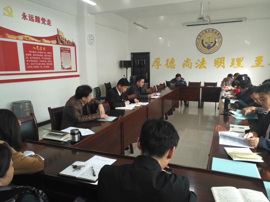 在会议室举行“初心讲坛”第四期微党课,院长张道许领学了河南省教育厅、中共河南省委政法委员会联合印发的《坚持德法兼修实施卓越法治人才教育培养计划2.0的实施方案》一文,足球博彩网站