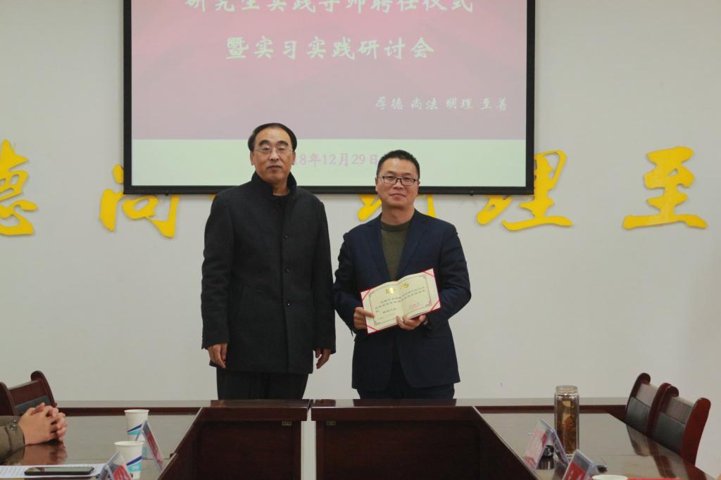 在2018年12月29号正式举行研究生实践导师聘任仪式暨实习实践研讨会,到会的领导和老师有校研究生处处长李永祥,聘任的实践导师为刘学志老师、王峰老师、亢银忠老师、完庆中老师、史焕乾老师。出席本次会议的还有足球博彩网站