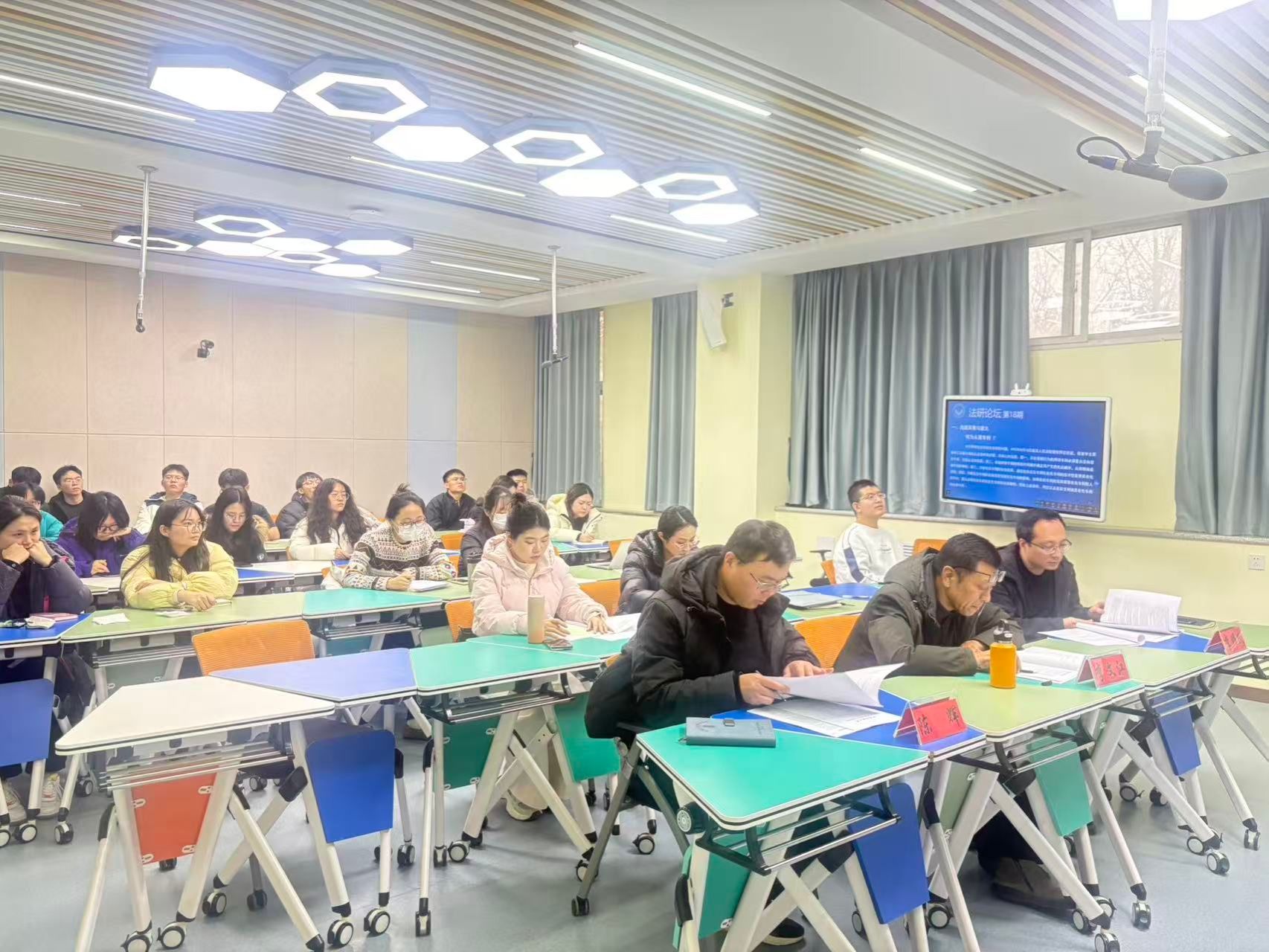 在3226智慧教室成功举办“法研论坛”第18期学术研讨会。本次会议邀请硕士研究生导师李文江教授、李耀跃教授、陈辉副教授担任评议人。2024级法学硕士研究生王维宇、原迎杰、高璐围绕“法治进程中的多元面向:从私权界定、公权规制到司法智慧”做主题分享。部分2024级、2025级硕士研究生参加会议。会议由2024级法学硕士研究生李腾主持。