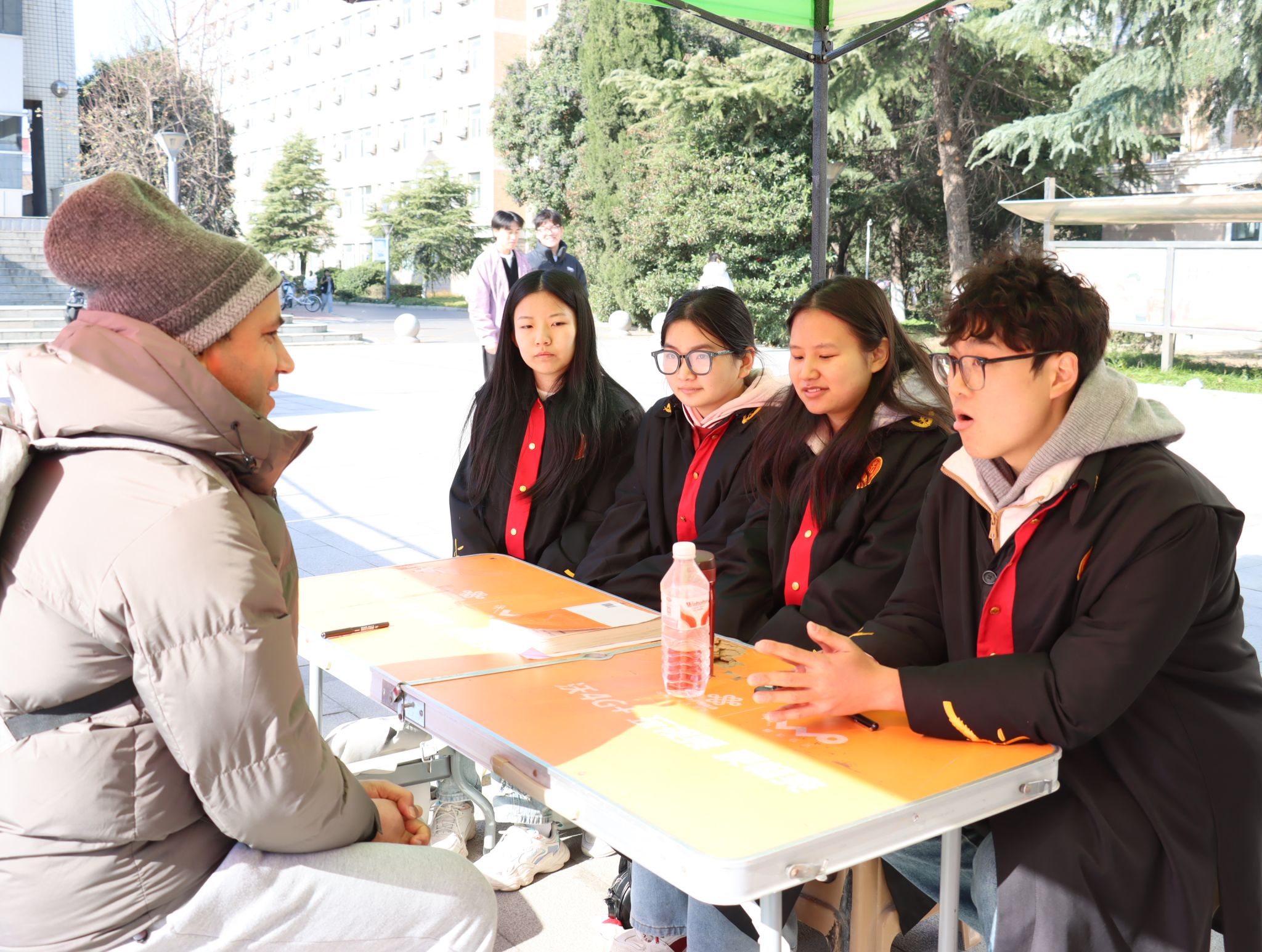 与此同时,在钟楼广场“一站式”学生社区同步开展了“法律诊所”“知识产权维权服务”和“校园科研诚信诊所”等多项现场咨询服务。足球博彩网站 专业教师为师生进行解答,有效提升了师生宪法意识和法治素养,强化大学生自觉担当宪法精神传承者与法治校园建设者的责任意识;志愿者们向全体师生发放宪法宣传手册,普及宪法基本原则、公民基本权利义务等核心内容,“宣传+服务”相结合,推动法治观念真正从文本走向生活、从理念变为行动。