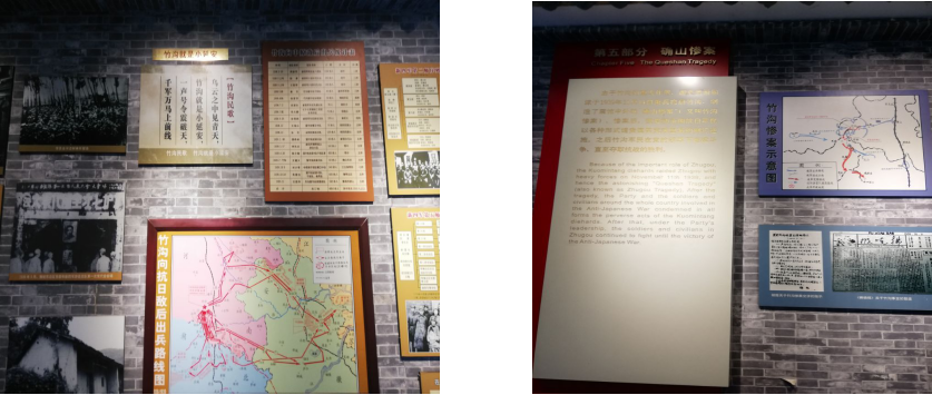 东展厅《竹沟惨案》。序厅是李先念为竹沟革命烈士陵园题词。展厅内容分为七部分;