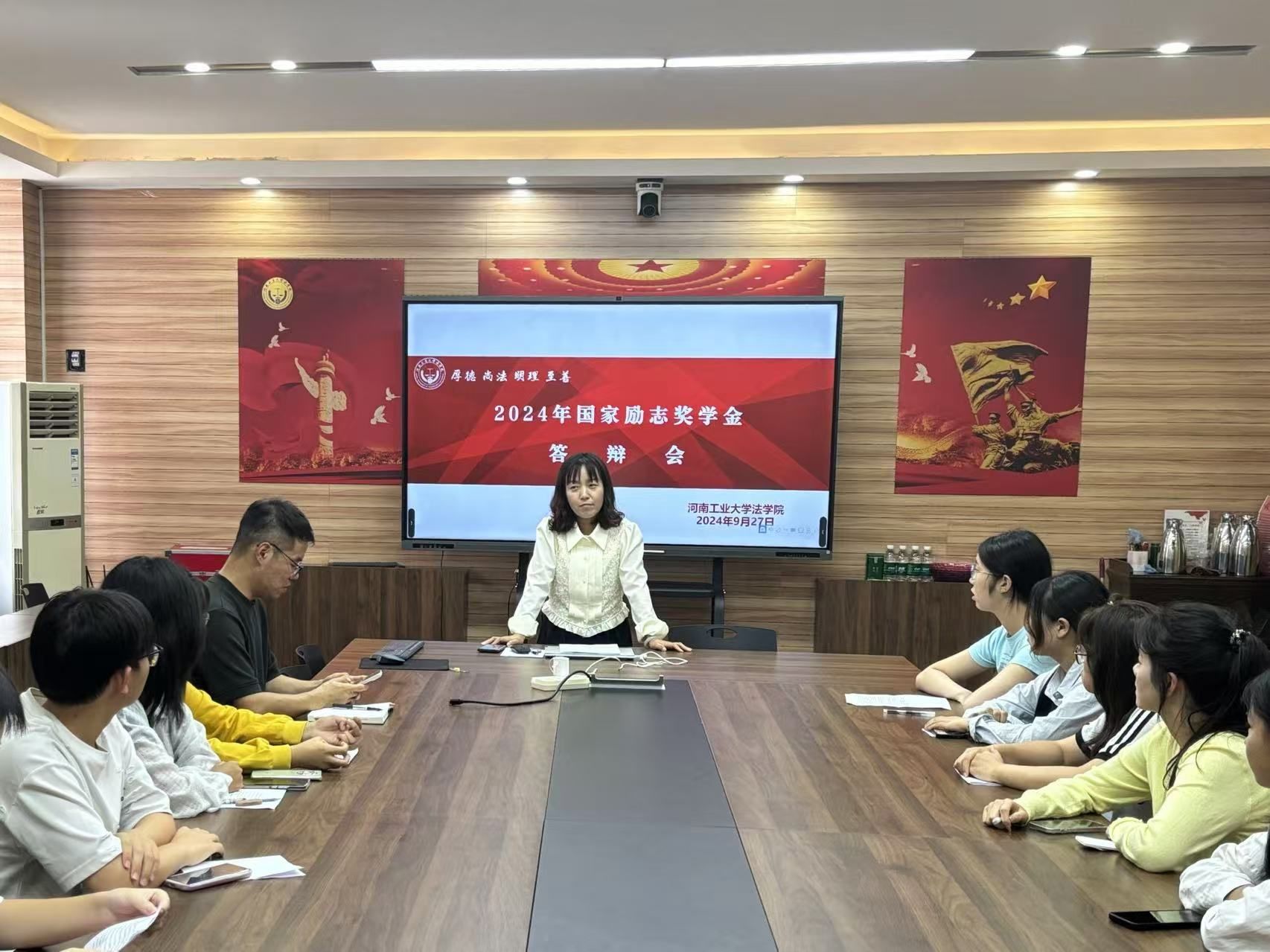 在3424会议室通过线上线下相结合的方式召开国家奖学金、国家励志奖学金答辩会,党委副书记、全体辅导员以及41名国家奖学金、国家励志奖学金申请者参加会议,会议由周静主持。