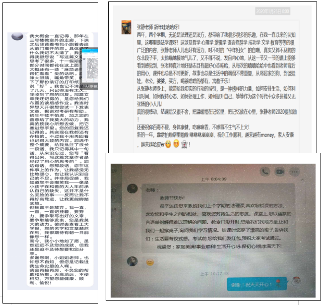 走心的教育既在课内也在课外。对于教师来说,育人的主阵地一定是课堂。因为那是与学生交流最多、最深入的空间和平台:缘深者在课下会主动与你交流,而对于缘浅者,课堂也许是师生交流的唯一渠道。所以,我一直努力去打造“走心”的专业课,也一直在探索课程思政与专业能力的融合机制。与此同时,课外也是一个不容忽视的育人阵地,因为孩子们被对待的方式很可能就是他们日后对待别人的方式。所以,真诚、宽容、与人为善等等所有这些值得追求的价值和品质,在很大程度上是要在日常的师生交往中才能潜移默化的实现。建设性的批判、“明亮的对话”一直是我坚持的原则,因为这不仅是法科学生的专业素质,也是公共对话的基础、是现代“民主”的基石。