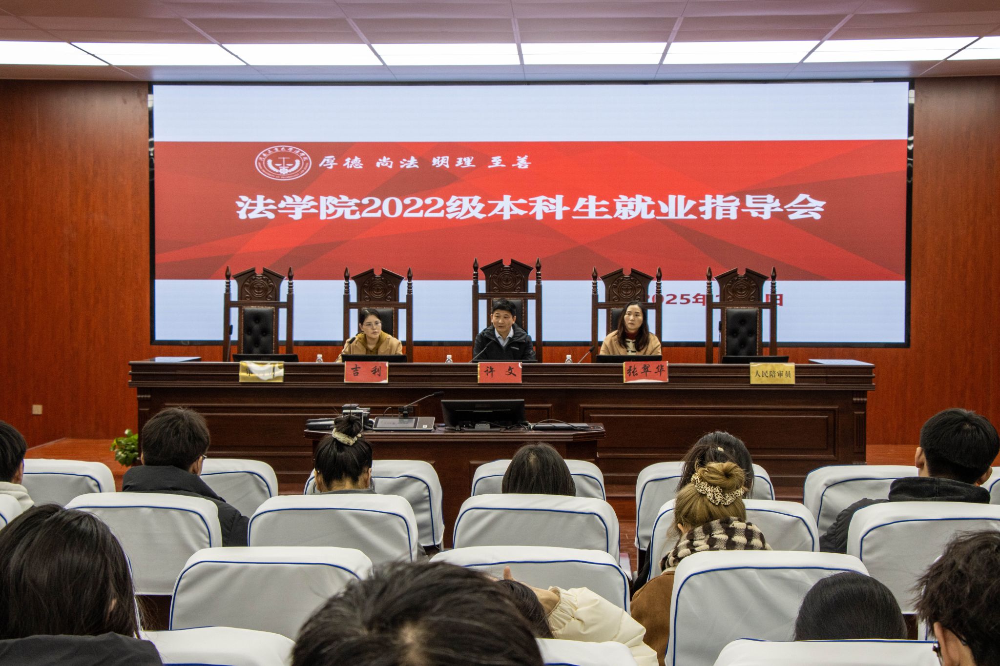 在智慧模拟法庭召开2022级本科生就业指导会。足球博彩网站